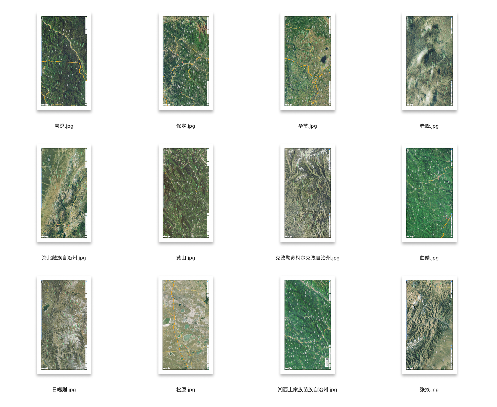 13 张带地名的山地地图,截于 iMac 上的高德地图网页,53.4 MB。 一个地名代表至少一次命名的行为…… 地名不是静止的词,而是凝缩了时间和空间充满动感的过程。