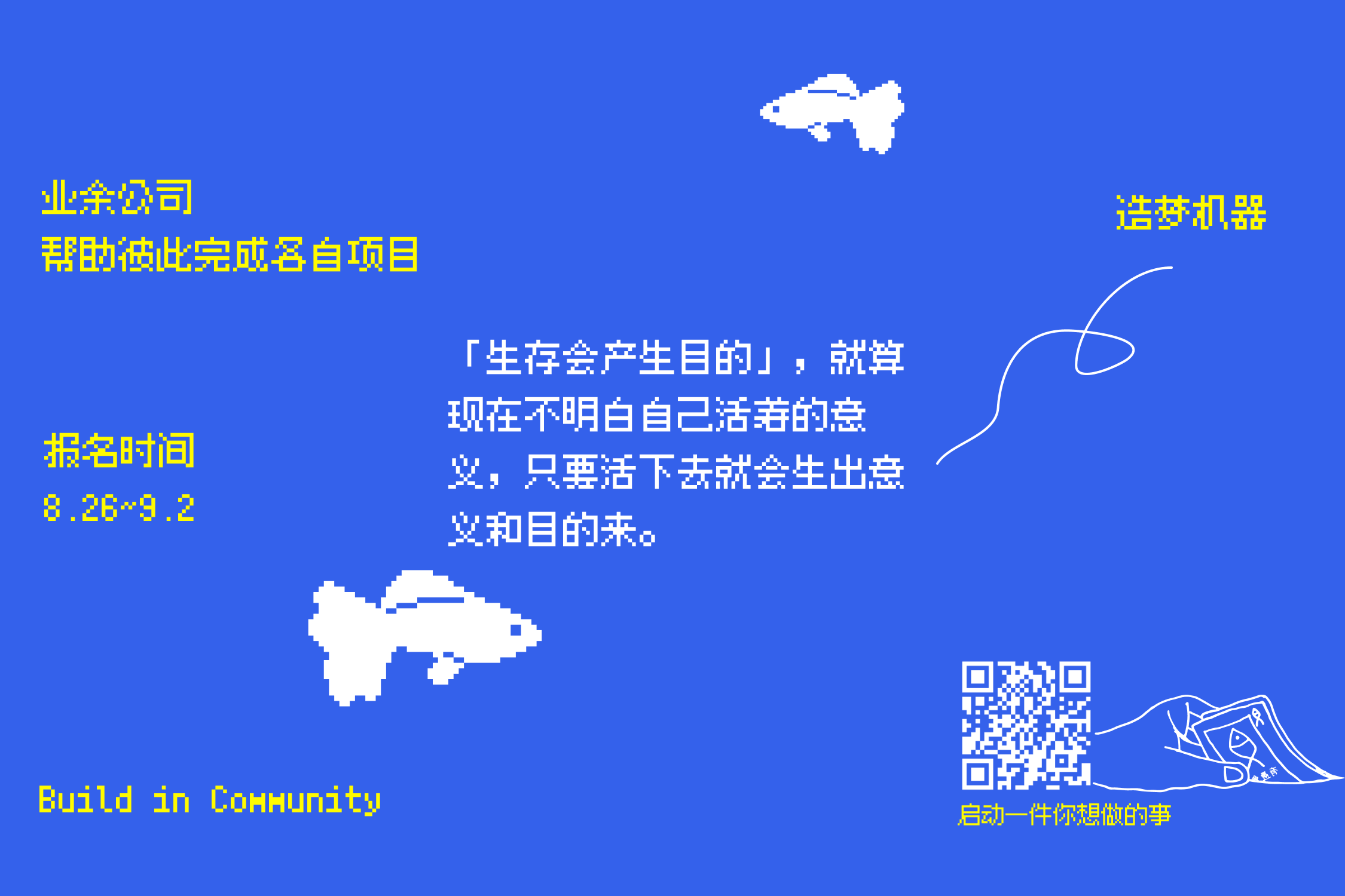 你最近在好奇什么?有在捣鼓什么小项目吗?每月一期的业余公司招募又启动了,带上你的项目,到一个互助的创作者社群内启动吧!
