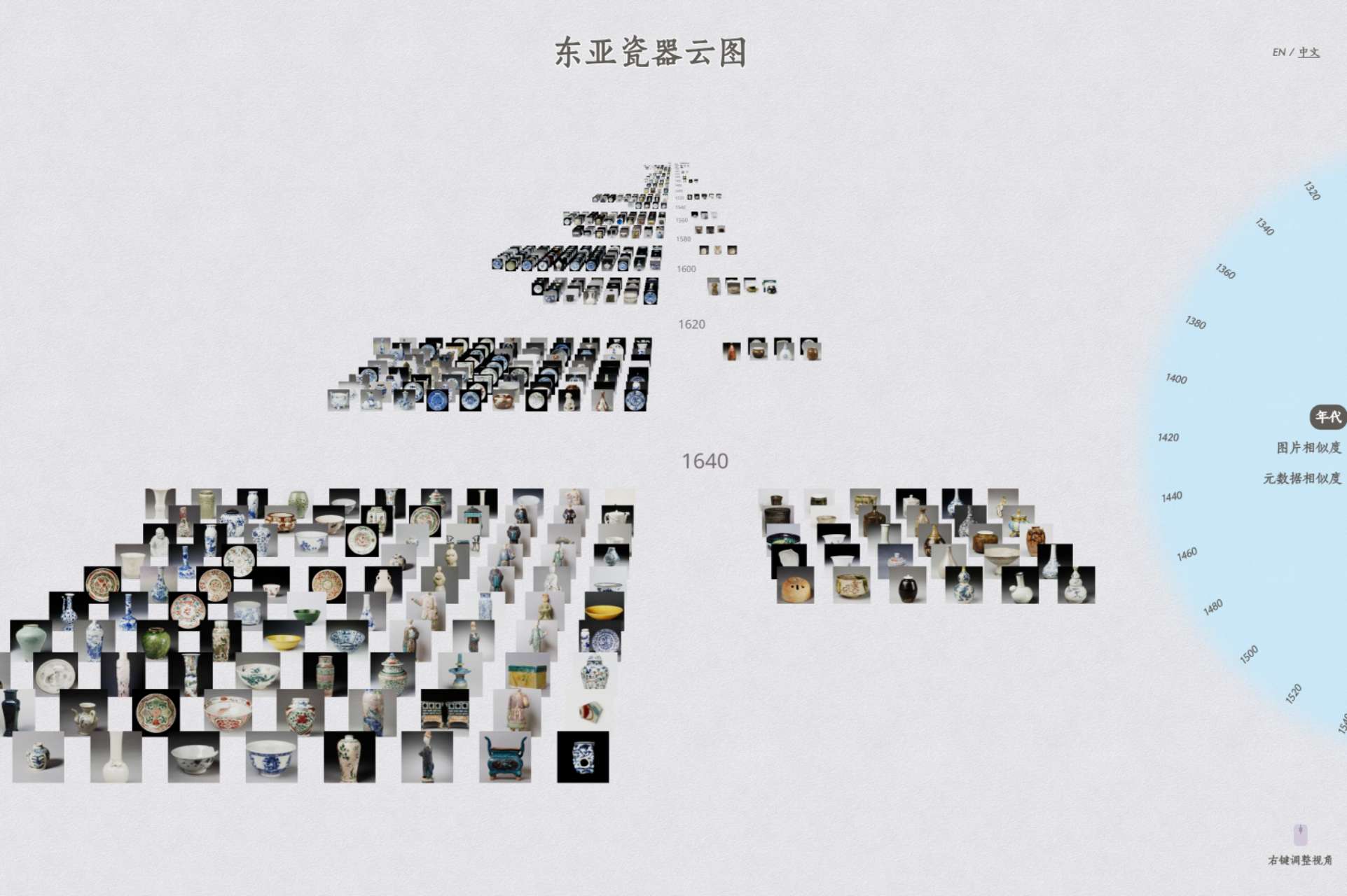 「这次的可视化项目来自 V&A 博物馆珍贵的东亚瓷器收藏,这个汇聚了 8000 多件珍品的庞大收藏,展现了东亚千年来的艺术交融与技艺传承。然而,由于物理展览空间的限制,大部分藏品无法向公众展出。为了突破这一限制,我希望借助人工智能技术,在数字空间中展示和推广这些藏品,让更多人看见它们。」(延伸阅读)