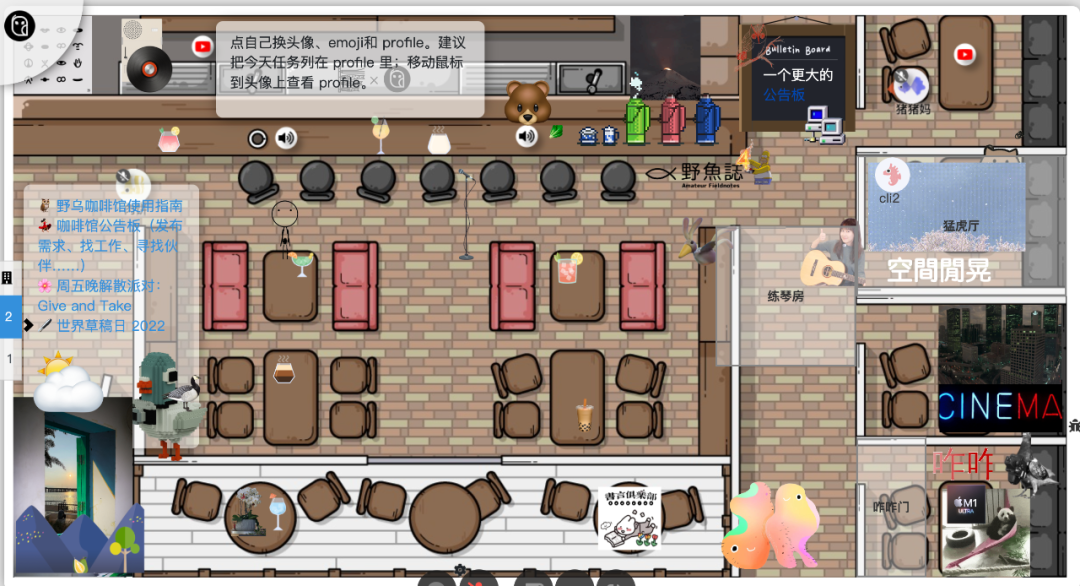 第二点,你提到虚拟和跟现实。首先,我觉得我现在做线上咖啡馆,就很少有人在做。我之前也去过上海的明室,它活得很久,做了九年,那它肯定有自己生存的方式。其实活得很久对我来说是最重要的标准。