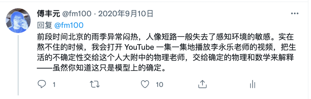 有一种感觉,大家线下跟线上能够互动起来,因为其实聊很多东西也跟线下相关。我自己希望有一种平的和心态,线上线下不是对立的,而是能够连接在一起。