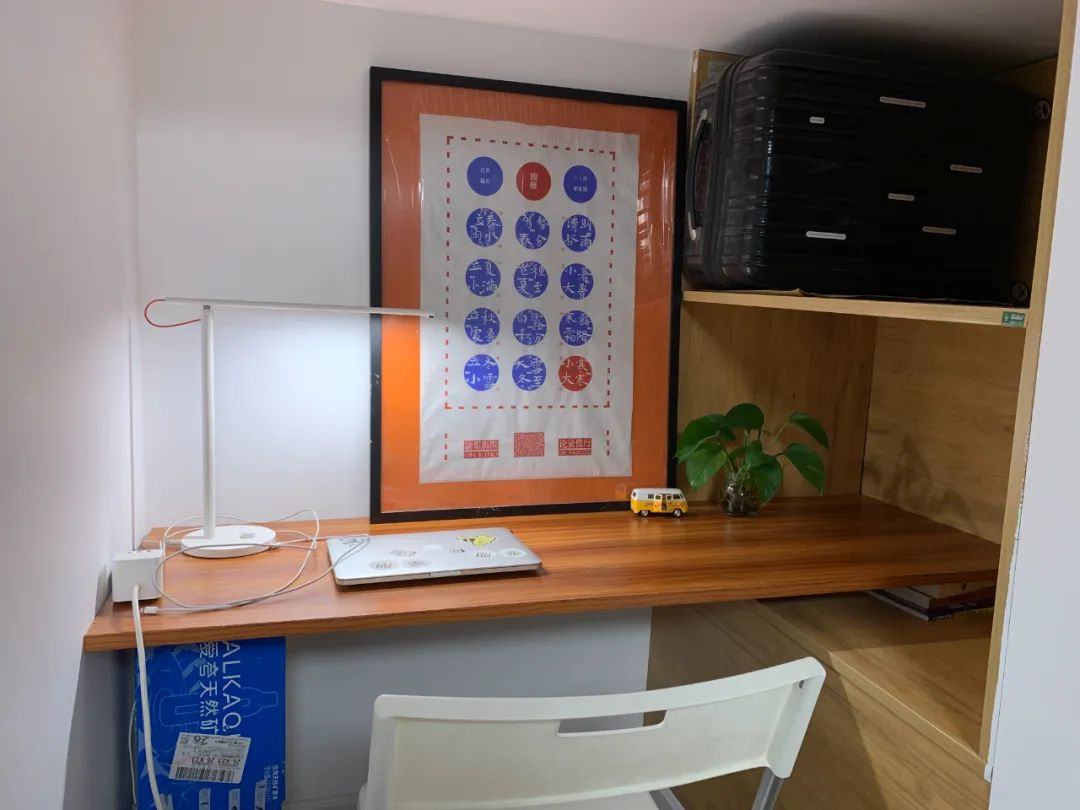 开会还需要独立空间,我就没有空间了。当时我想了好久,就发现这里有个空间可以利用起来。当时设计这个空间是做衣帽、储物的,放些被子或者是换季的衣服,没想过做自己的空间。后来发现可以改造一下,很适合内向者的一个工作台。