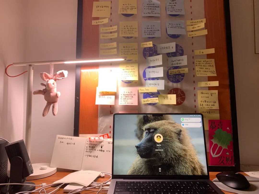 但现在主要还是在家里办公。家办公也分一期和二期,因为我家是一个上下两层的 loft 结构。