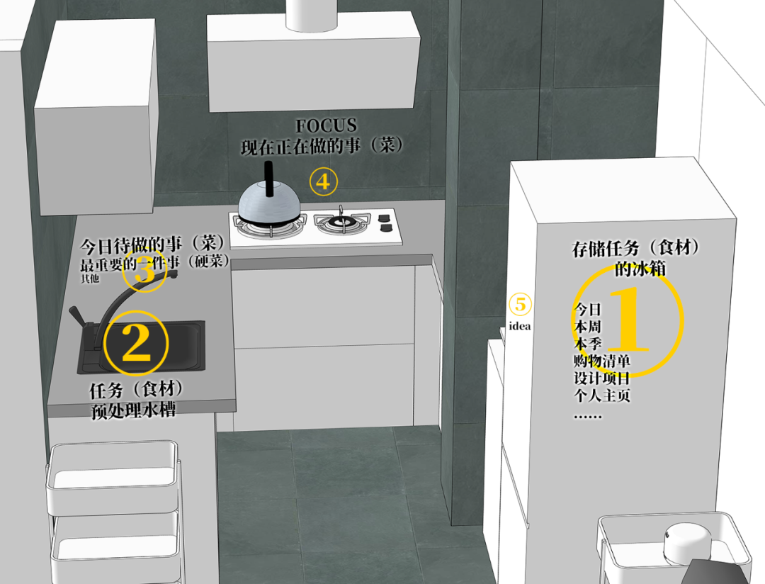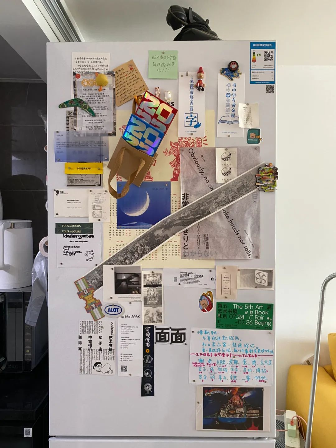 因为我是家的主要设计人,我会观察我妻子怎么使用和改造我的一些小细节。如果我引导她往冰箱上贴东西之后,她就会自然而然往上贴东西了。